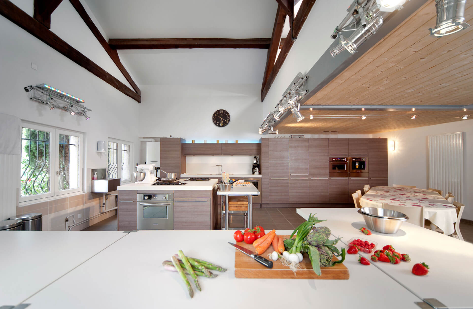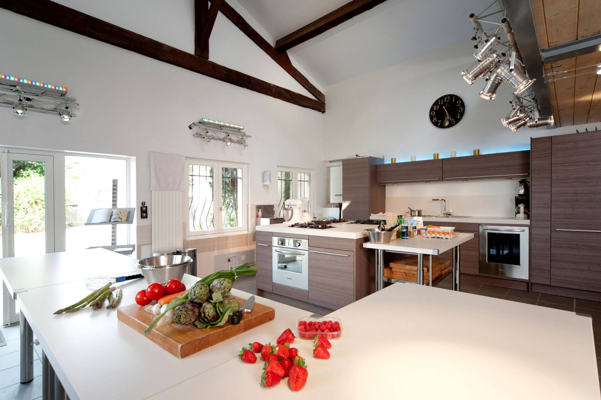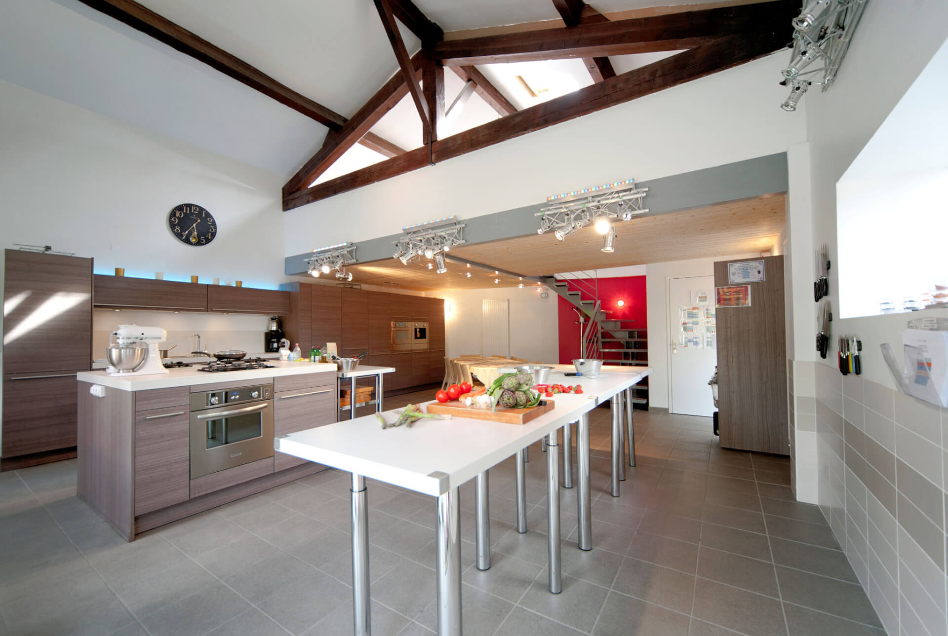 Dans un jardin entourné de verdure, vous découvrirez un grand espace climatisé de 70 m2 entièrement dédié pour vous ! L'atelier est équipé de 4 plans de travail modulables et de matériel professionnel : 1 four 90 cm chaleur tournante, 2 fours à vapeur, 1 tiroir de mise sous vide 1 fourneau avec 2 feux gaz, 5 foyers induction, un teppanyaki, 1 four micro-ondes combiné, 2 réfrigérateurs, 1 congélateur, 2 tiroirs chauffe-plats des robots, des ustensiles de cuisine professionnels, le ménage et la plonge sont en option Vidéo-projecteur HD, Ecran blanc, Paperboard, Wifi gratuit Accès et WC handicapés, parking gratuit devant l'atelier L'atelier Délicieusement Vôtre s'adapte également à vos autres besoins Petits déjeuners d'affaires, Séminaires, Déjeuners, Cocktails, Formations diététiques, Présentations de produits, Corporate meetings, Conférences, Lectures, etc.. L'atelier est facilement accessible, distant à peine de 10 minutes du centre de Lyon Le bus C19 s'arrête à 50 mètres.